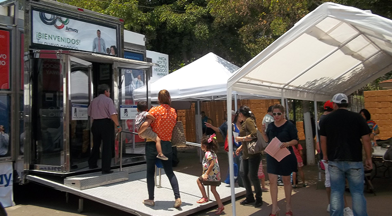 Amway aprovechó la capacidad movil del Cinetrnasformer para llegar directamente a los lugares dónde su público se encontraba para así atraer a un número importante de socios en busca de hacer crecer su plantilla de miembros y hacer subir de nivel a las personas ya afiliadas a este sistema.