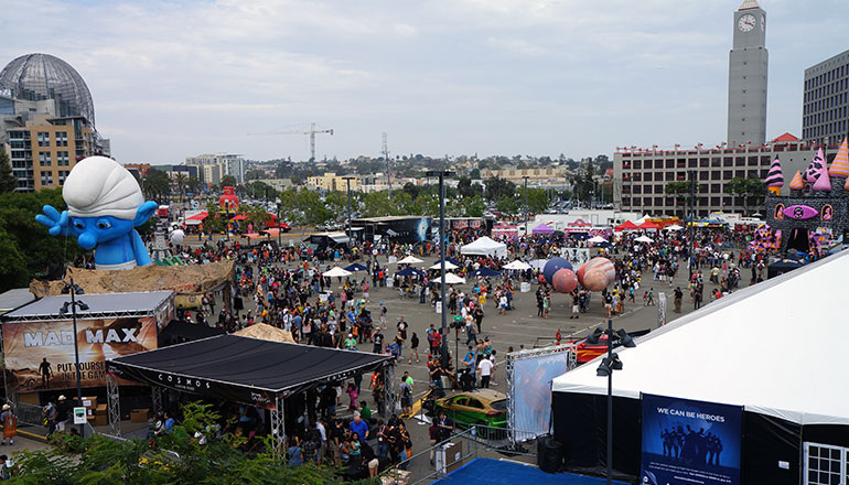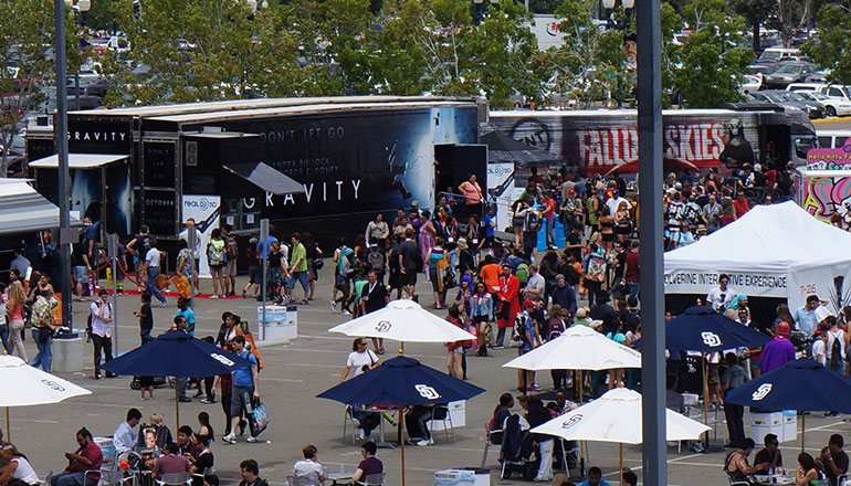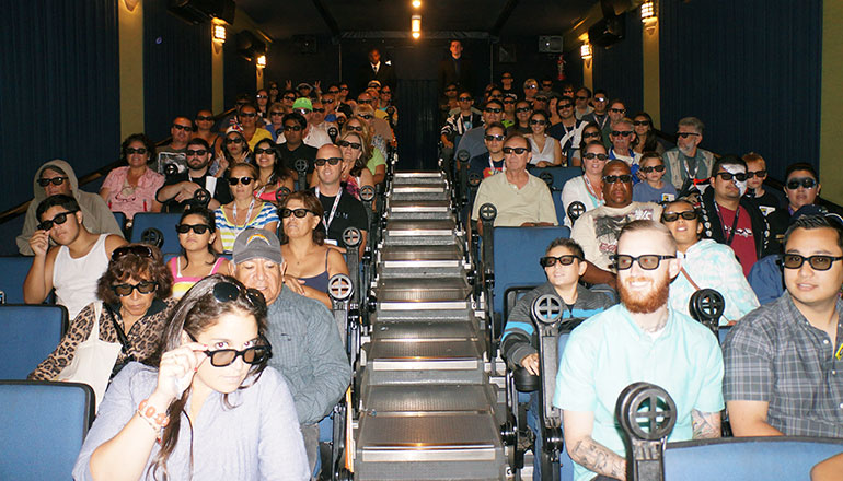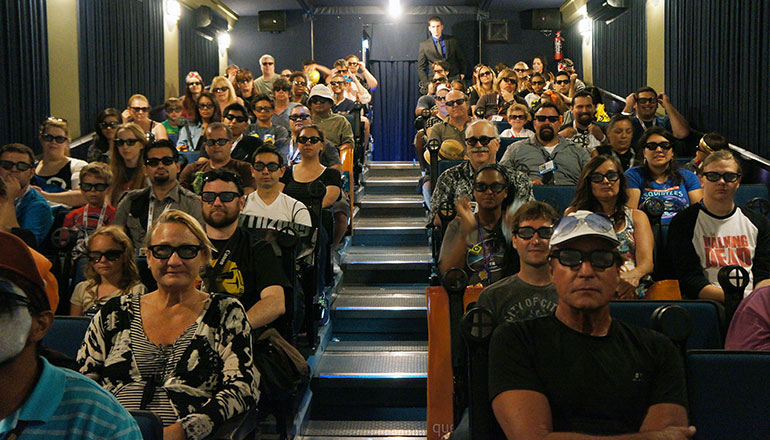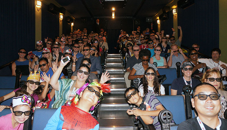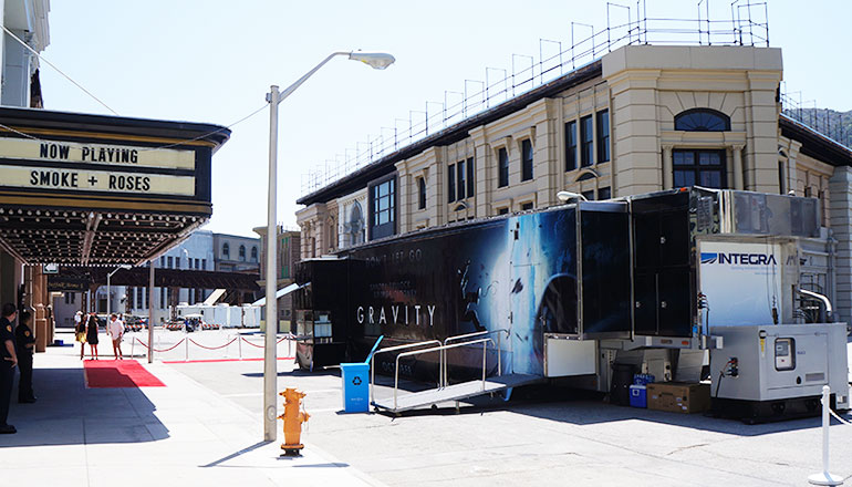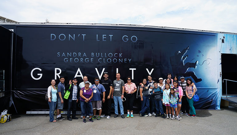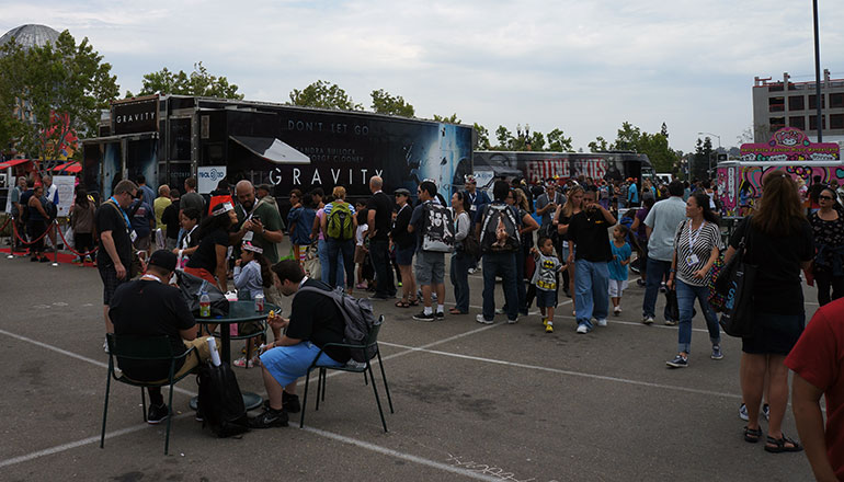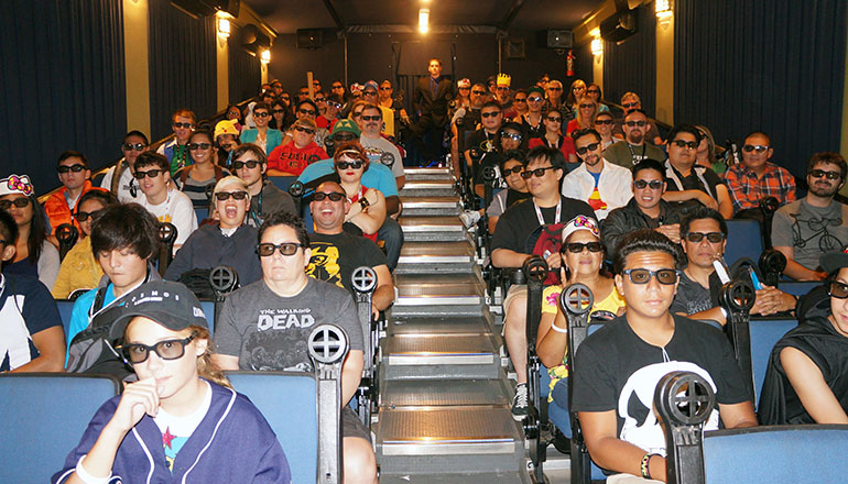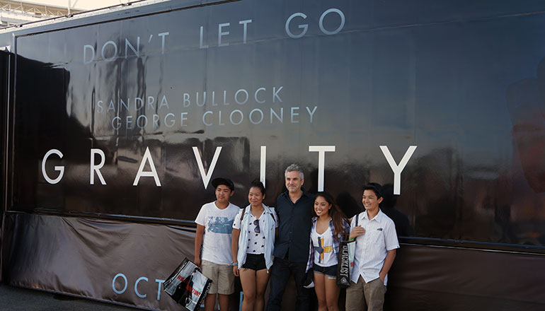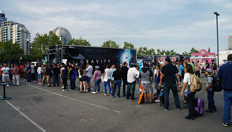Warner Bros. Entertainment y RealD se unieron para promover el éxito de taquilla en 3D mediante Cinetransformer en el evento “ComicCon International”. Dos características exclusivas de 7 minutos de la aclamada película, se mostró a los espectadores durante todos los días del evento. La unidad estaba completamente envuelta con escenas de la película Gravedad y RealD proporcionó la tecnología 3D así como las gafas para la visión. El centro multimedia en el interior estaba equipado con un proyector compatible 2D/3D NEC DCI y el sonido envolvente a la vanguardia. Más de 11,000 asistentes contó la premier de la película Gravedad en el Cine Móvil. El Director Alfonso Cuarón estaba en el lugar, saludó a la multitud en la zona de los teatros y tomó fotos con los fans en frente del Cinetransformer “Gravedad”.