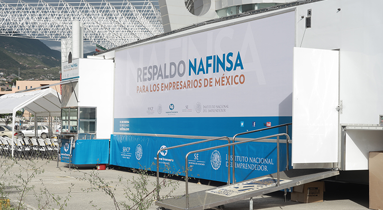 Cada sucursal móvil NAFINSA en su exterior cuenta con módulos de espera y mesas de información, además de una ventanilla de revisión de documentos. En su interior se equiparon con dos recepciones para recepción de documentos, ocho escritorios para atención de aperturas de crédito, internet móvil, equipos de cómputo, multifuncionales, despachadores de agua y frigo bar. Las pantallas Led y la pantalla tipo cine se emplearon para proyectar material institucional. En conjunto NAFINSA logró tener oficinas funcionales, un impactante medio para difundir su labor financiera.