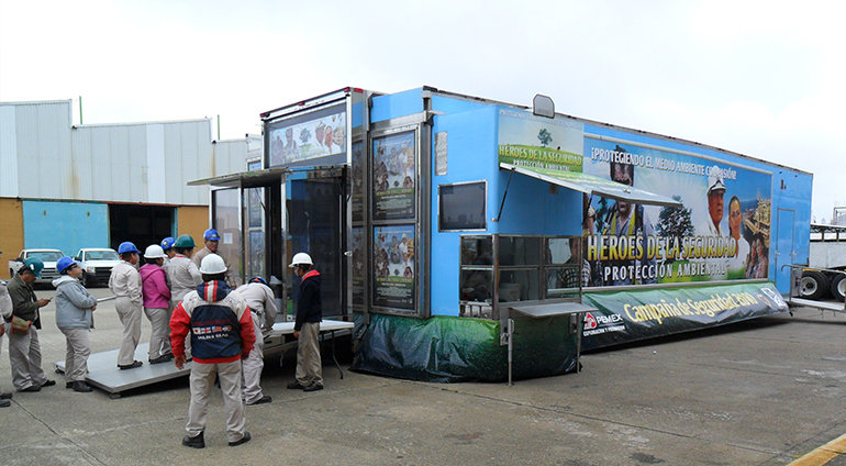 Para conseguir este objetivo de manera eficaz, se determino crear una campaña constante, innovadora, creativa, entretenida y directa que realmente pudiera generar un cambio en la actitud, el pensamiento y la conciencia de los trabajadores de PEMEX. Mediante el uso de los cines móviles Cinetransformer logramos una total inmersión de los espectadores.