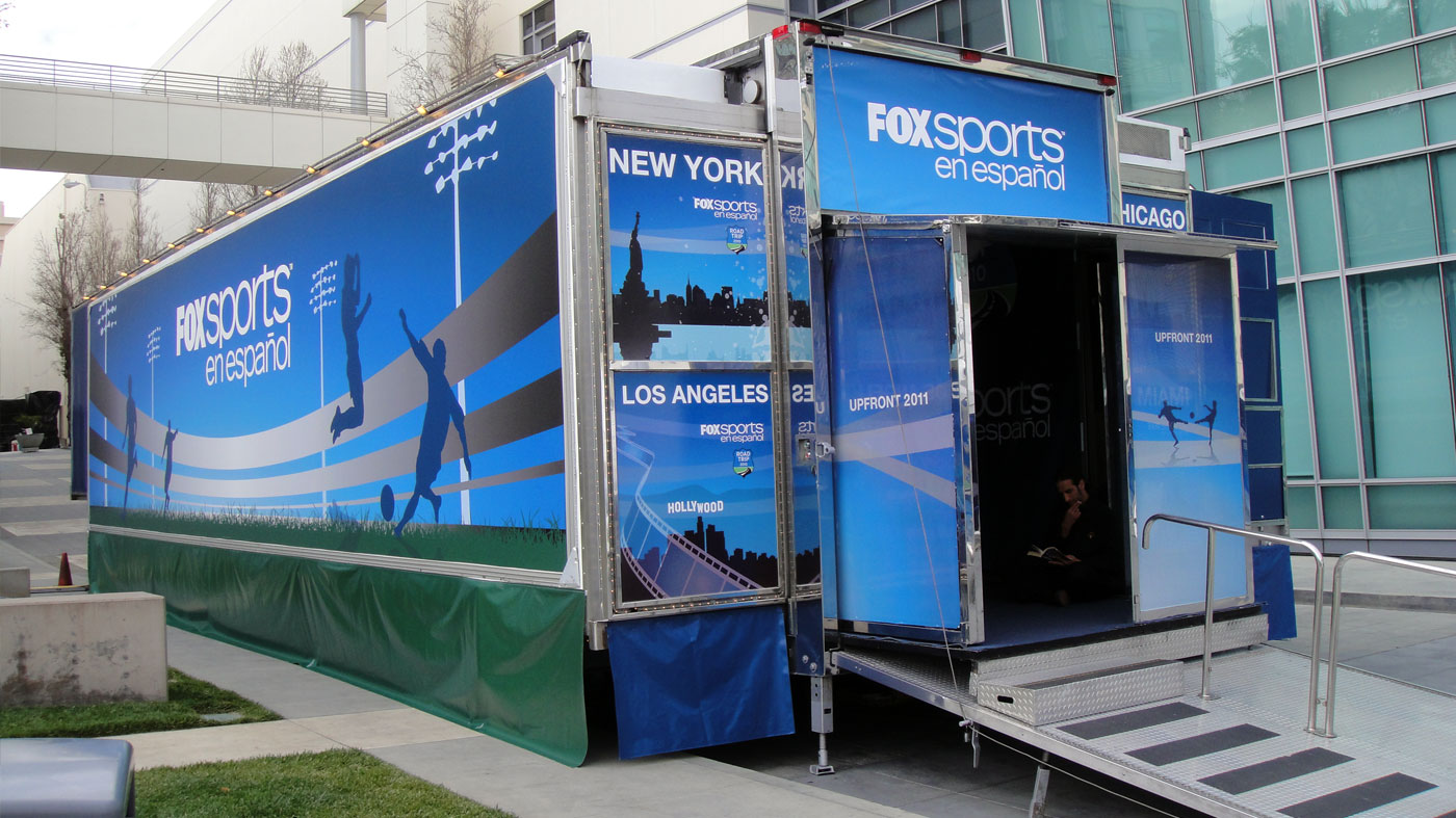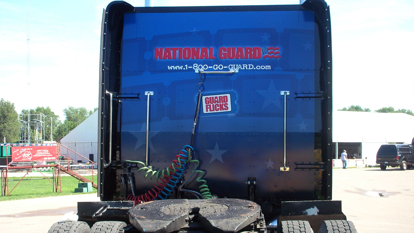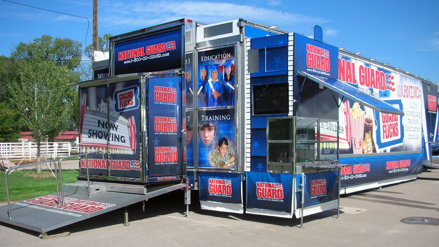 El Cinetransformer ofrece opciones estratégicas de marca, añadiendo al impacto visual para los trayectos móviles y eventos estáticos. Nuestro equipo puede proporcionar una variedad de opciones para diseñar la presentación más convincente para su marca en base a su presupuesto. La producción e instalación de los materiales gráficos se incluyen dentro de nuestro servicio. La zona exterior más grande, de la Cinetransformer, puede ser cubierto con una lona impresa que se instala de forma rápida y segura a través de marcos en cada lado de la unidad.