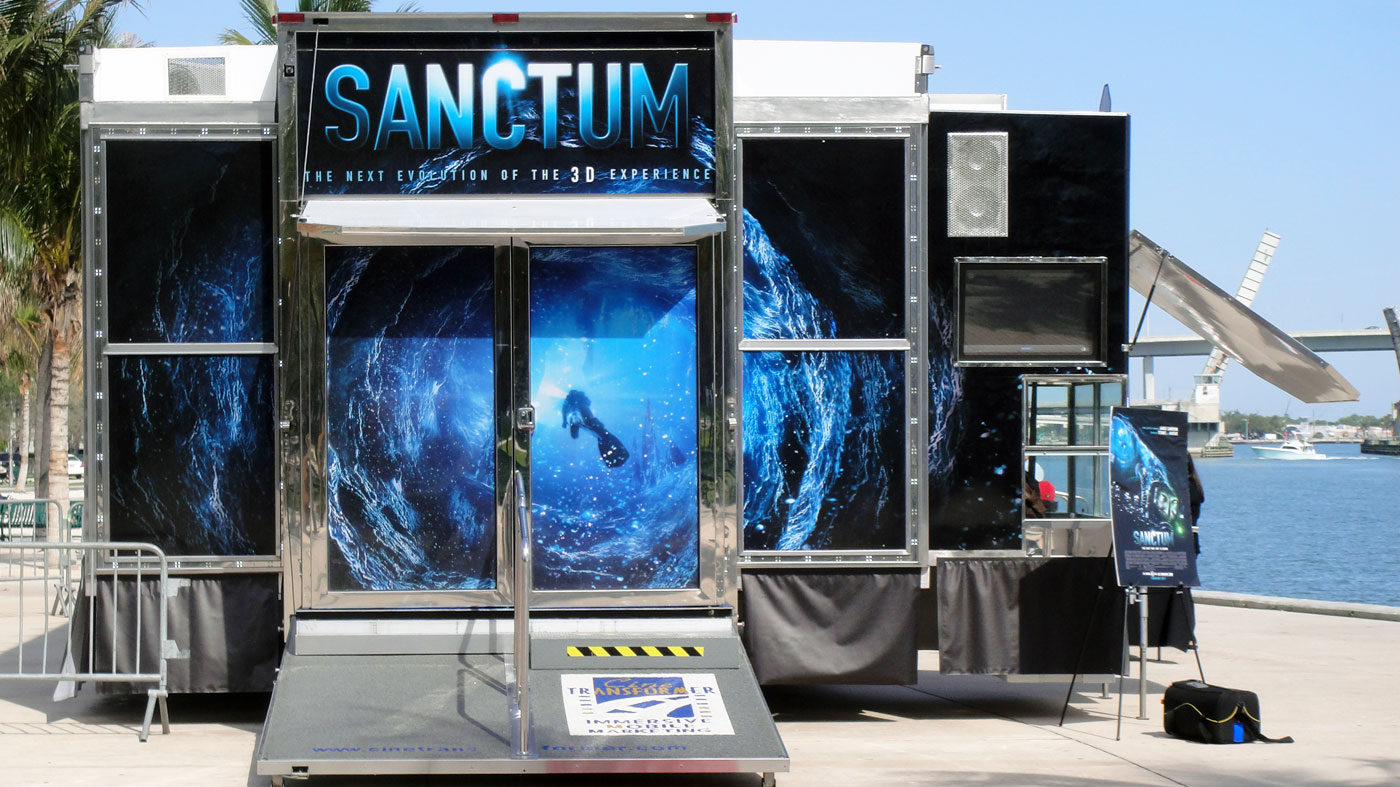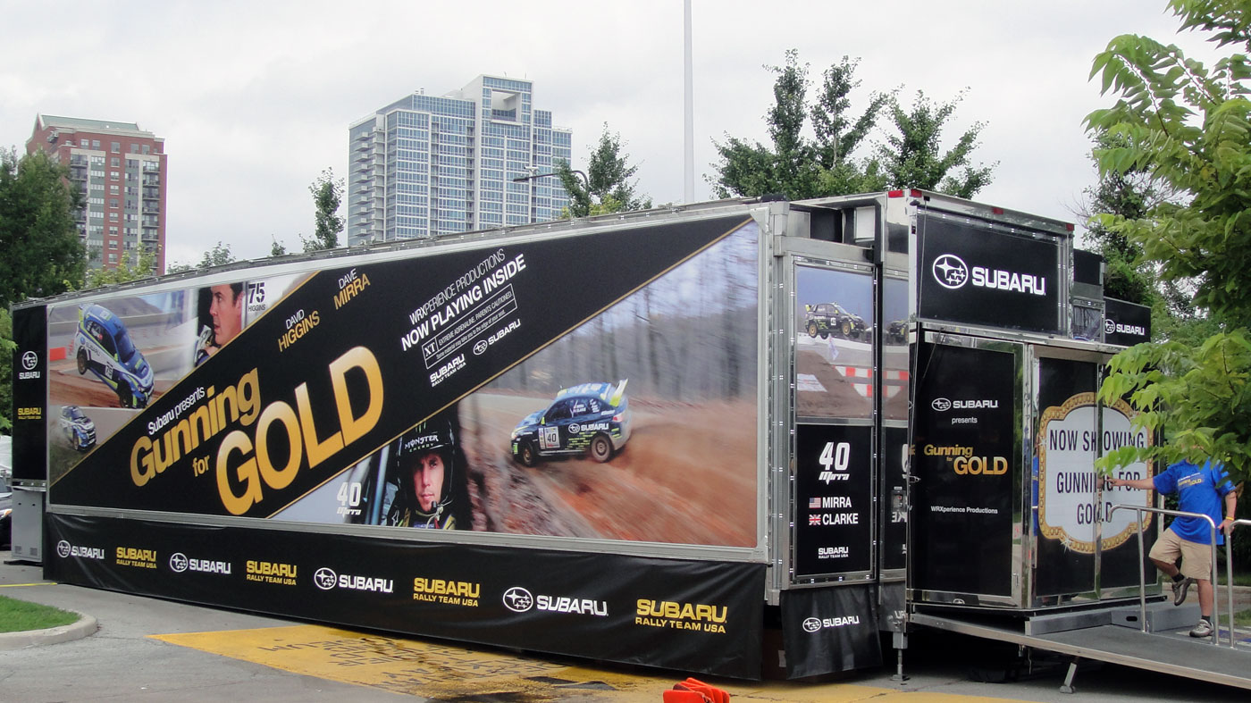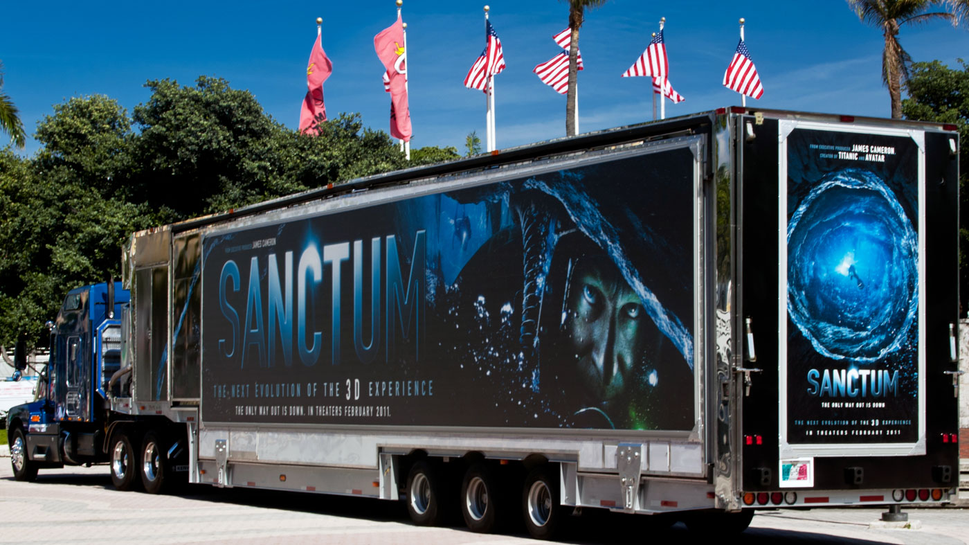 El Cinetransformer ofrece opciones estratégicas de marca, añadiendo al impacto visual para los trayectos móviles y eventos estáticos. Nuestro equipo puede proporcionar una variedad de opciones para diseñar la presentación más convincente para su marca en base a su presupuesto. La producción e instalación de los materiales gráficos se incluyen dentro de nuestro servicio. La zona exterior más grande, de la Cinetransformer, puede ser cubierto con una lona impresa que se instala de forma rápida y segura a través de marcos en cada lado de la unidad.