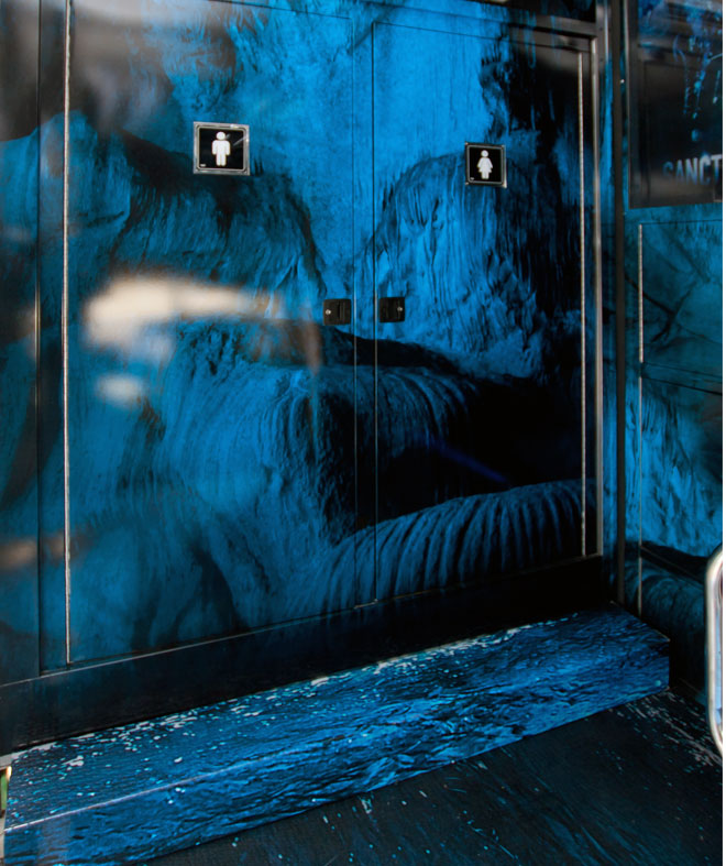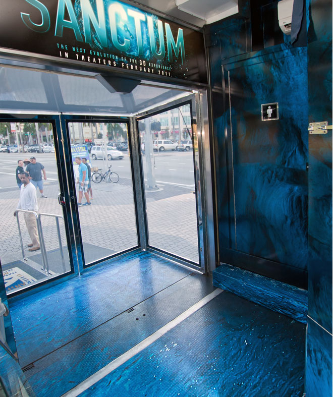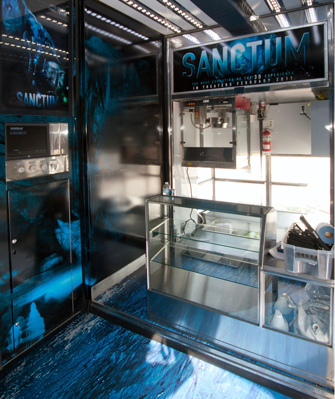 El interior de la Cinetransformer puede ser vestido con imágenes de la marca y de una manera tal, que los asistentes se sientan capturados y envueltos en el ambiente de la marca. Por ejemplo, las paredes interiores tienen secciones especiales que pueden acomodar un lienzo o mural de vinil. Los efectos especiales de iluminación, como luces negras y pintura especial se pueden instalar para crear efectos especiales de alto impacto.